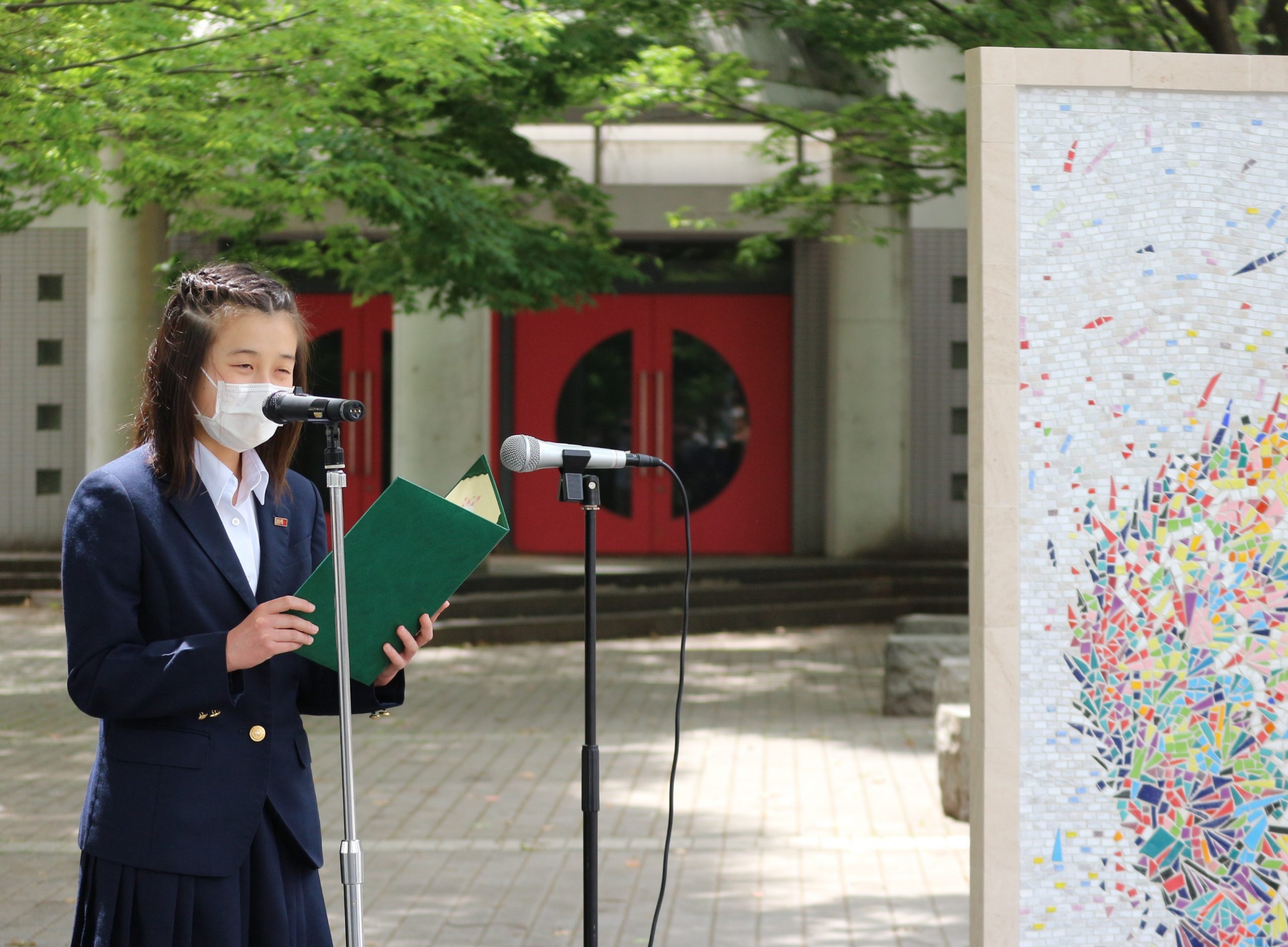 生徒を代表して 笹井美杏さん(生徒会長・3年)よりお礼のご挨拶です。